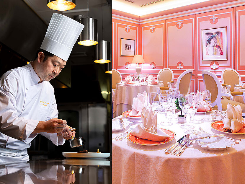 파스텔 핑크로 통일된 유럽 스타일의 실내는 마리 로랑산의 회화가 장식된 프라이빗 뮤지엄. 식사는 물론, 그 고급스러운 인테리어에서도 최고의 시간을 제공합니다.