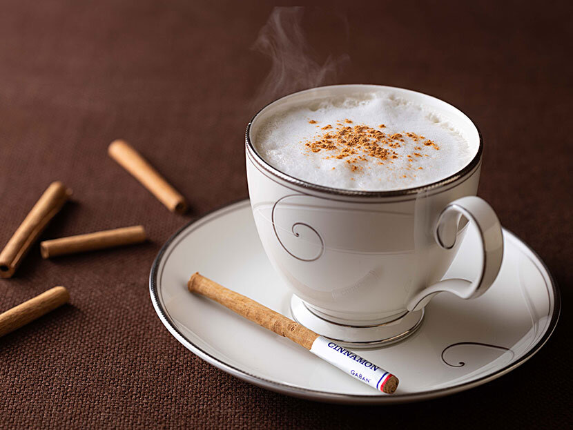 따뜻한 카페 라떼에 캐러멜의 단맛과 계피의 매운 맛이 더해진 향기로운 한 잔. 취향에 맞게 계피 스틱으로 더 깊은 맛을 더해도.