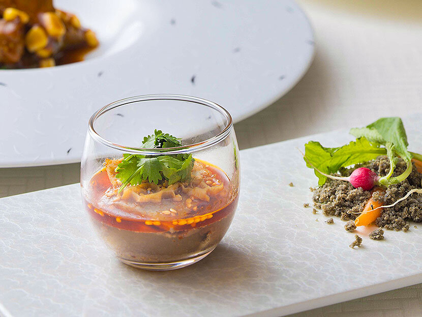 기존의 중국 요리와 같이 큰 접시에서 분리하는 스타일과 달리 한 접시씩 내는 프렌치 스타일의 점심 코스를 준비하고 있습니다.