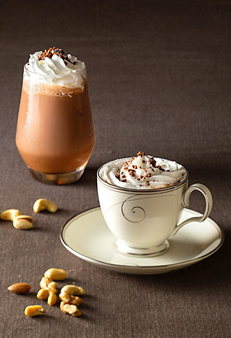 코코아를 기반으로 견과류의 맛이 향기로운 쓴 잔입니다.