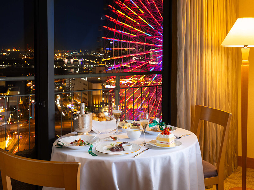 みなとみらいの夜景を眺めながら一足早いクリスマス。レストランさながらのクリスマス限定ディナーコースをお部屋にお届けいたします。